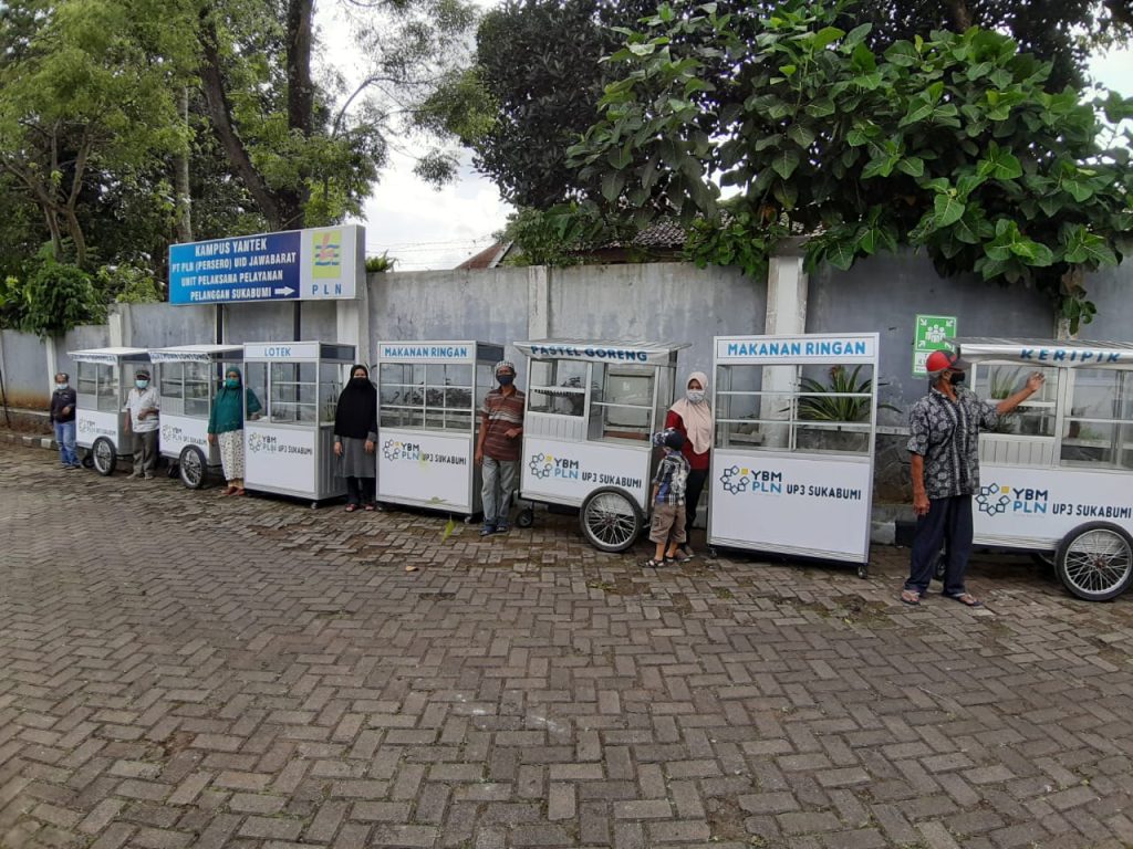 Bantu Pelaku Usaha Kecil YBM PLN UP3 Sukabumi Bagikan Belasan Gerobak